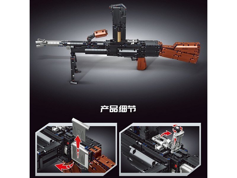 Конструктор представляет собой набор для постройки пулемёта Bren из 1785 деталей от RCM. Модель полностью повторяет внешний вид пулемета Bren, сошки раскладываются, магазин можно отомкнуть.