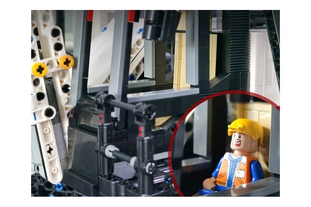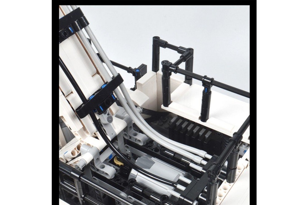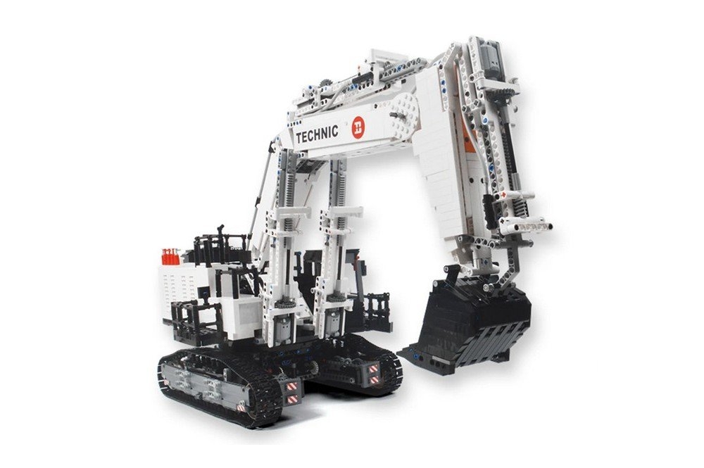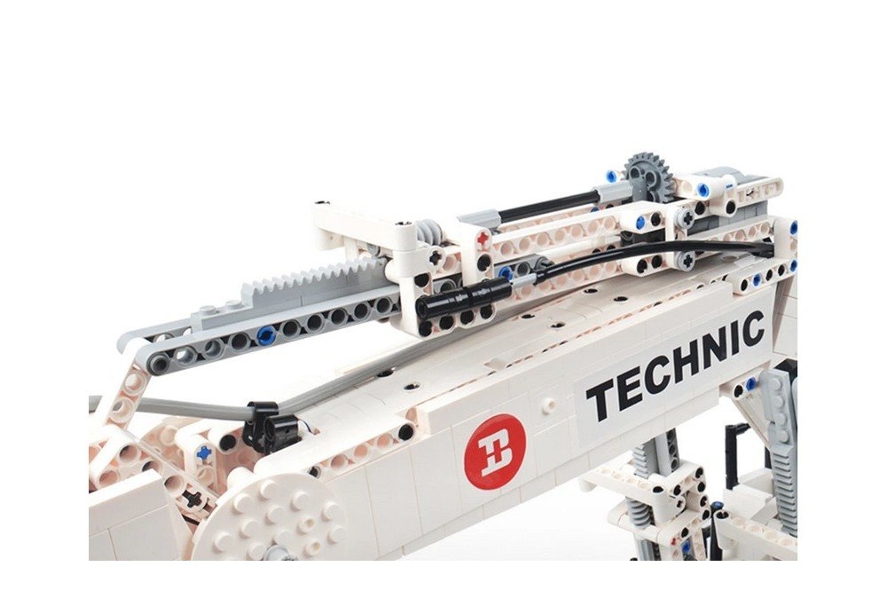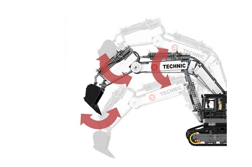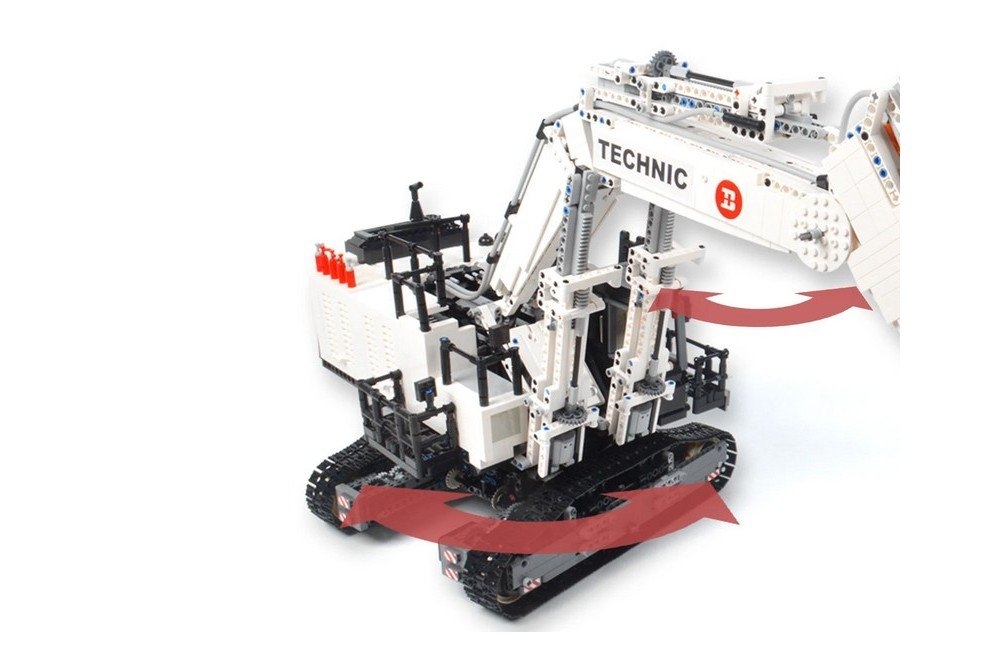Экскаватор может вращаться на 360 градусов и оснащен широкими гусеницами для предотвращения скольжения во время движения. Экскаватор имеет гибкую механическую стрелу, которую можно свободно выдвигать с помощью зубчатой передачи. Все пакеты с деталями пронумерованы для легкой сборки.