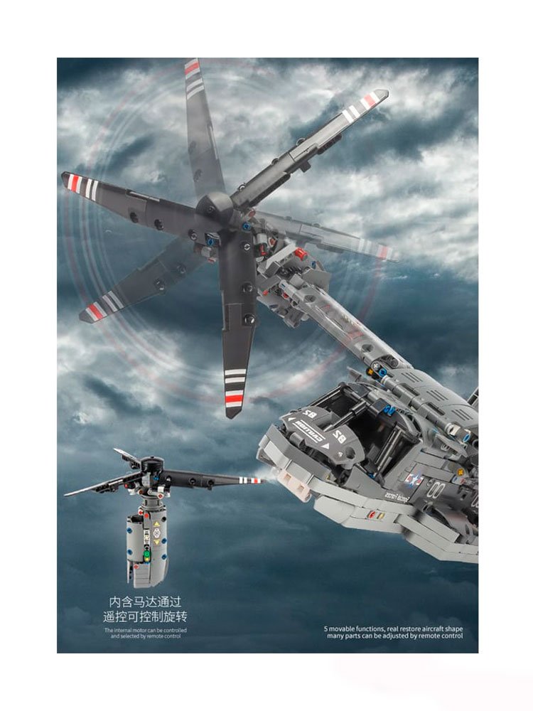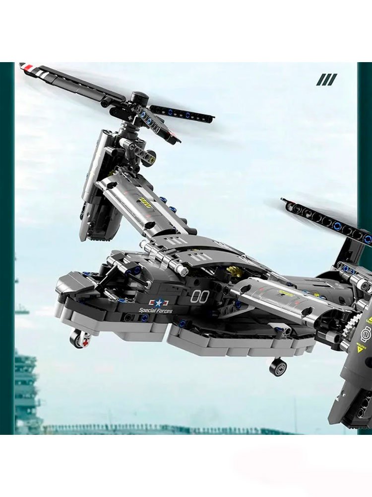 Конструктор представляет собой набор для постройки конвертоплана Bell Boeing V-22 Osprey из 1685 деталей от RCM. Двигатели вращаются на осях, винты крутятся. Закрылки крыльев могут вращаться, а продуманное рычажное устройство может перемещать их вверх и вниз. Грузовой отсек открывается переключателем на корпусе.