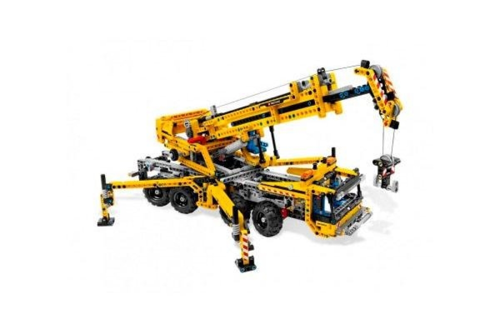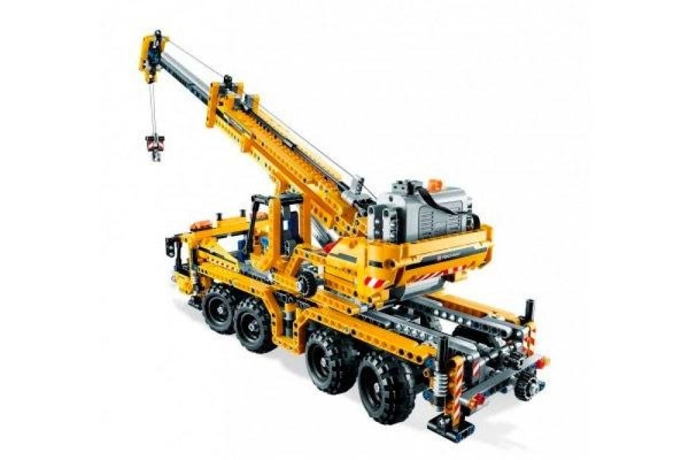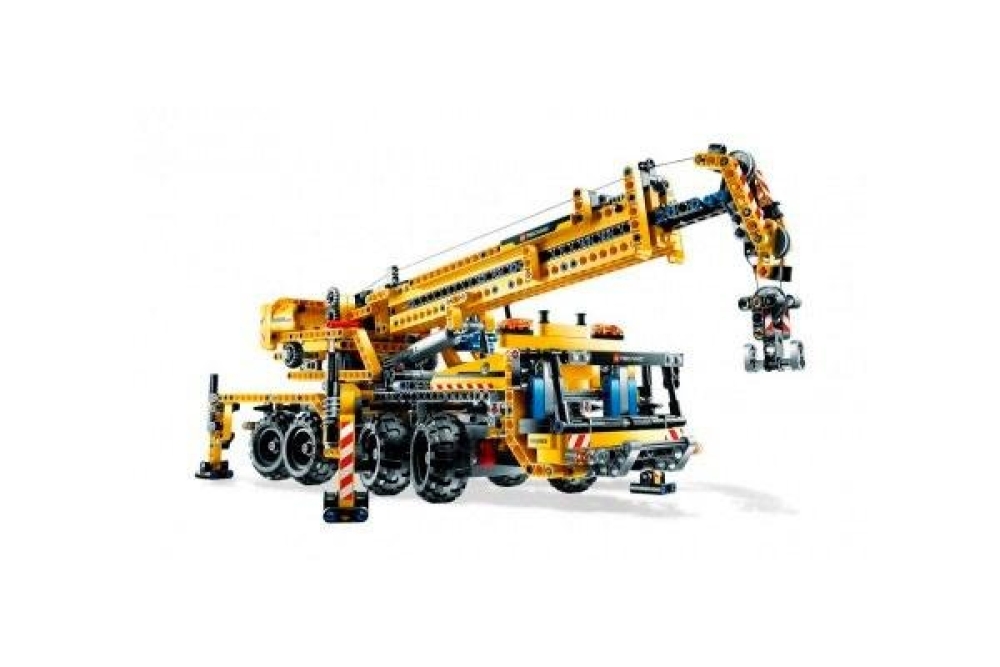 Кран конструктор содержит 1392 детали из которых за пару часов можно собрать полноценную детализированную модель. Помимо высокой детализации она имеет много движущихся деталей, открывающиеся двери и подвижной кран. С помощью пульта дистанционного управления можно ездить во все стороны, а также двигать стрелой крана, которая является телескопической. С пульта в т.ч. выдвигаются фиксирующие боковые опоры, которые придают устойчивость при погрузочно-разгрузочных работах. На модель установлены осветительные фары и поворотники. Система из редукторов отвечает за полный привод на 6 колес. Помимо передвижного крана вы можете собрать модель другим способом и получится высокий стационарный кран.