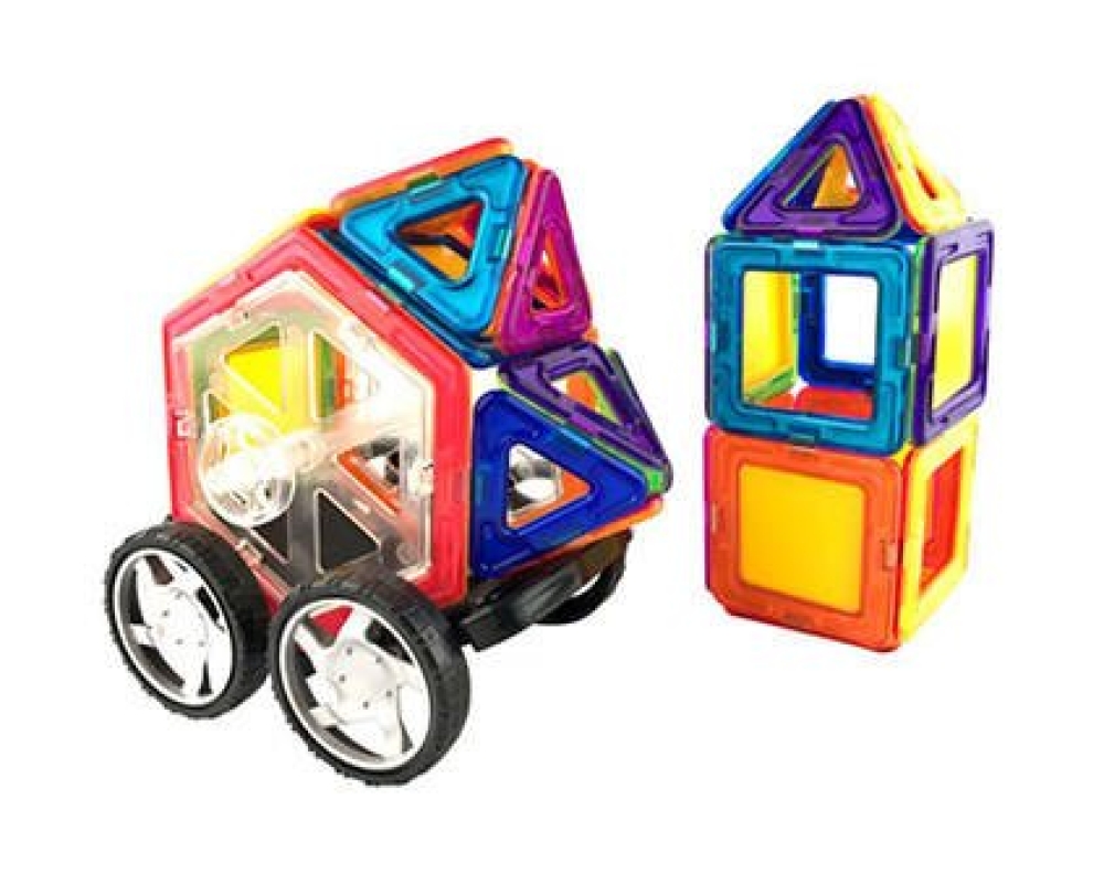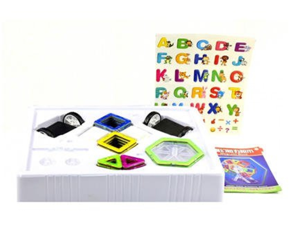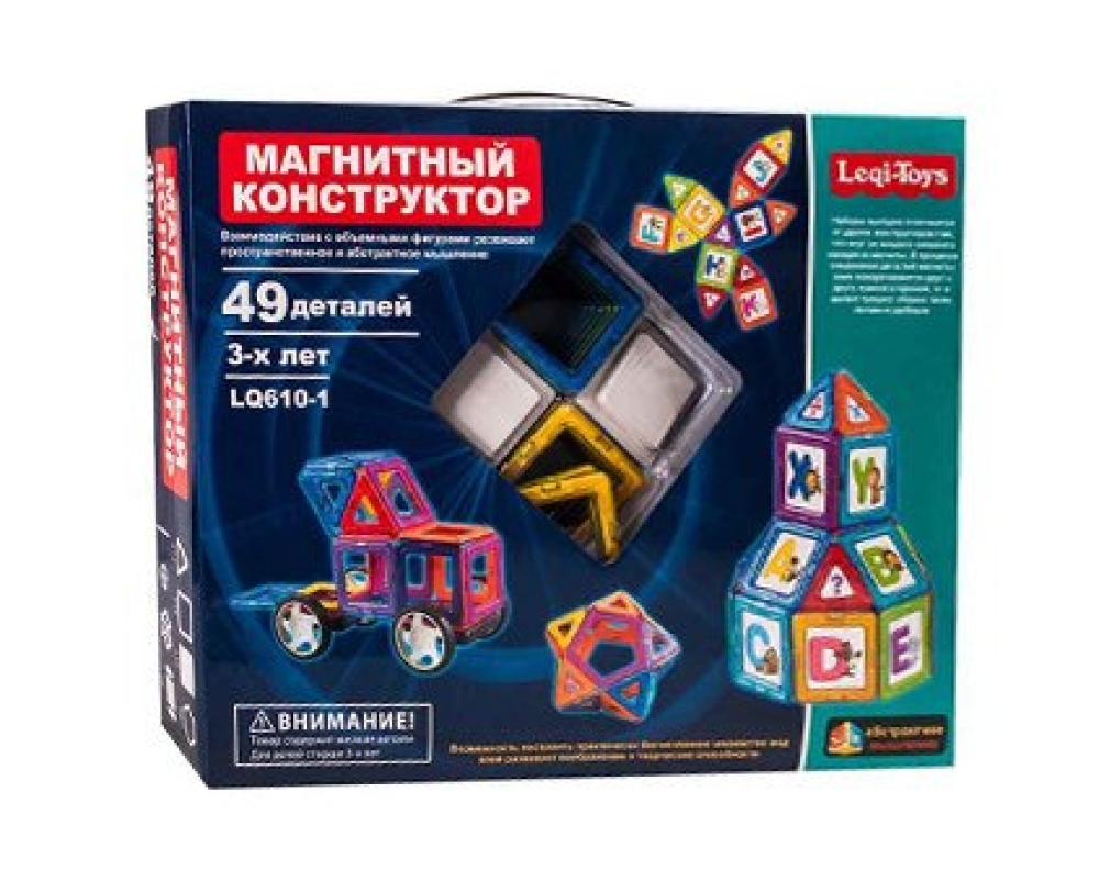 Яркий магнитный конструктор Leqi Toys (49 деталей) – увлекательная и полезная игрушка для мальчиков и девочек от 3 лет. Крупные объемные детали с безопасными скругленными углами, выполненные из качественного и прочного ABS-пластика, крепко сцепляются друг с другом за счет магнитов. Из 49 деталей набора ребенок может создать самые разнообразные трехмерные модели - домики, фигурки животных, ракеты и т.д. Также в набор входят 2 колесные базы и 4 колеса для создания машинок. Сила магнитного поля будет прочно удерживать форму построенной модели и после завершения, благодаря чему ее также можно использовать в играх. Оригинальный конструктор откроет перед самыми маленькими детьми безграничные возможности для занимательных игр, воплощения идей и развития творческих способностей, а также в игровой форме познакомит понятием геометрических фигур, с такими физическими явлениями, как магнетизм. Игры с Leqi Toys принесут не только веселье и радость, но и пользу, способствуя развитию мелкой моторики рук, абстрактного, пространственного и логического мышления, богатой фантазии Вашего малыша.