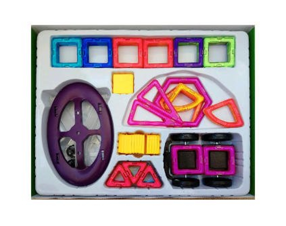 Яркий магнитный конструктор Mag-Building (78 деталей) принесет не только веселье и удовольствие детям от 3 лет, но и пользу, способствуя развитию мелкой моторики рук, пространственного и логического мышления, богатой фантазии Вашего малыша. Крупные объемные детали с безопасными скругленными углами, выполненные из ABS-пластика, легко и прочно крепятся друг к другу за счет магнитных вставок. Набор включает 78 деталей разных геометрических форм, что позволяет создавать самые разнообразные трехмерные модели – домики, животных, ракеты и т.д. Также в набор входят 2 колесные базы и 4 колеса для создания машинок, детали для сборки карусели. Благодаря силе магнитного поля построенная модель будет прочно удерживать форму после завершения, и ее также можно использовать в играх. Оригинальный конструктор откроет перед детьми безграничные возможности для полезных и занимательных игр, воплощения идей и развития творческих способностей. А также в игровой форме познакомит с понятием геометрических фигур, основами конструирования, с такими физическими явлениями, как магнетизм.
