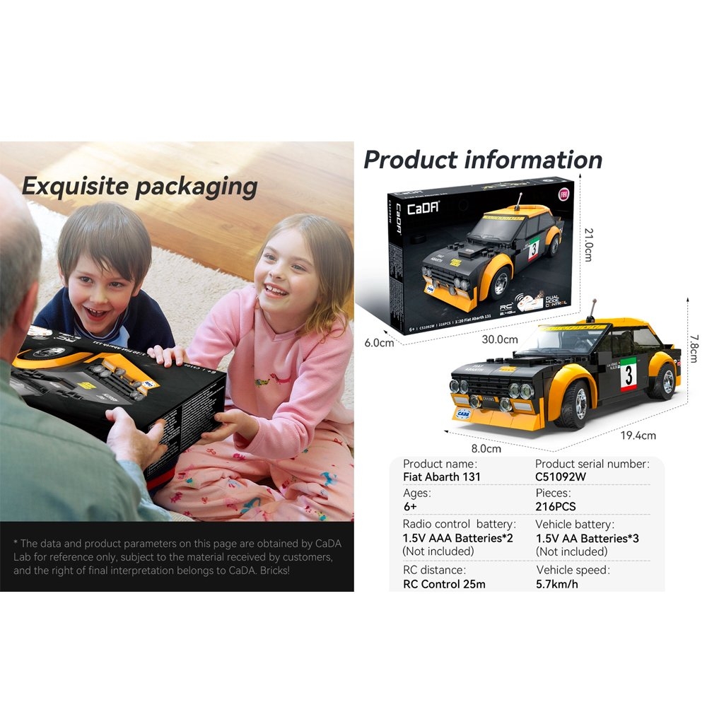 Радиоуправляемый конструктор CaDA спортивная машинка Fiat Abarth 131 1/24 (216 деталей) - C51092W