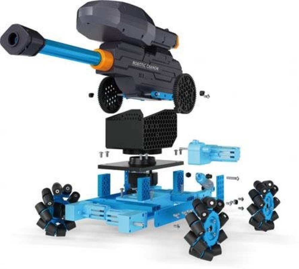 Если ваш ребенок увлекается высокими технологиями, робототехникой, электроникой и программированием, то данный STEM конструктор отлично подойдет в качестве подарка. Эта модель не только развлекает, но и обучает. В комплекте вы найдете 63 детали для сборки из пластика, металл и резины, а также блок электроники и радиоуправления. Несущая часть легкая и прочная - выполнена из алюминия. Собранная модель может ездить во всех направлениях, в т.ч. по диагонали, за счет специальных колес. Также в наборе идет пушка, стреляющая водяными бомбочками.