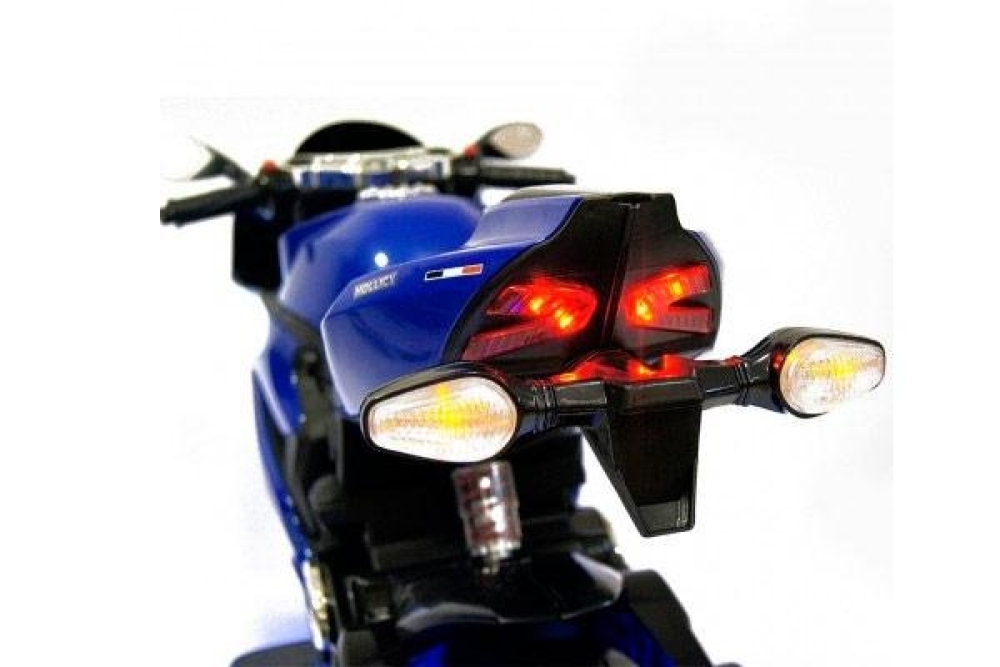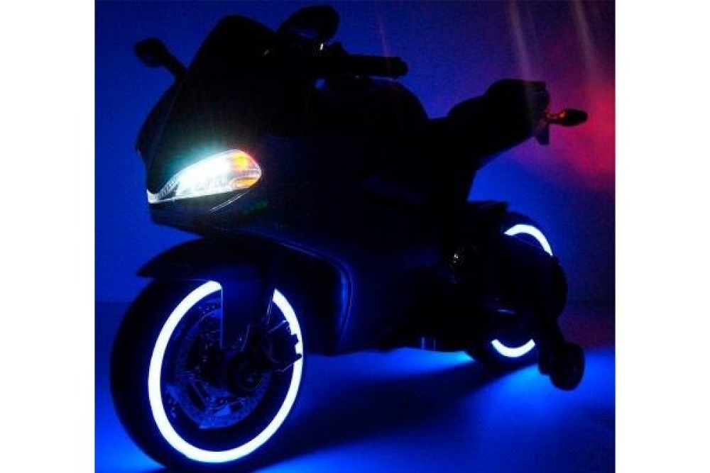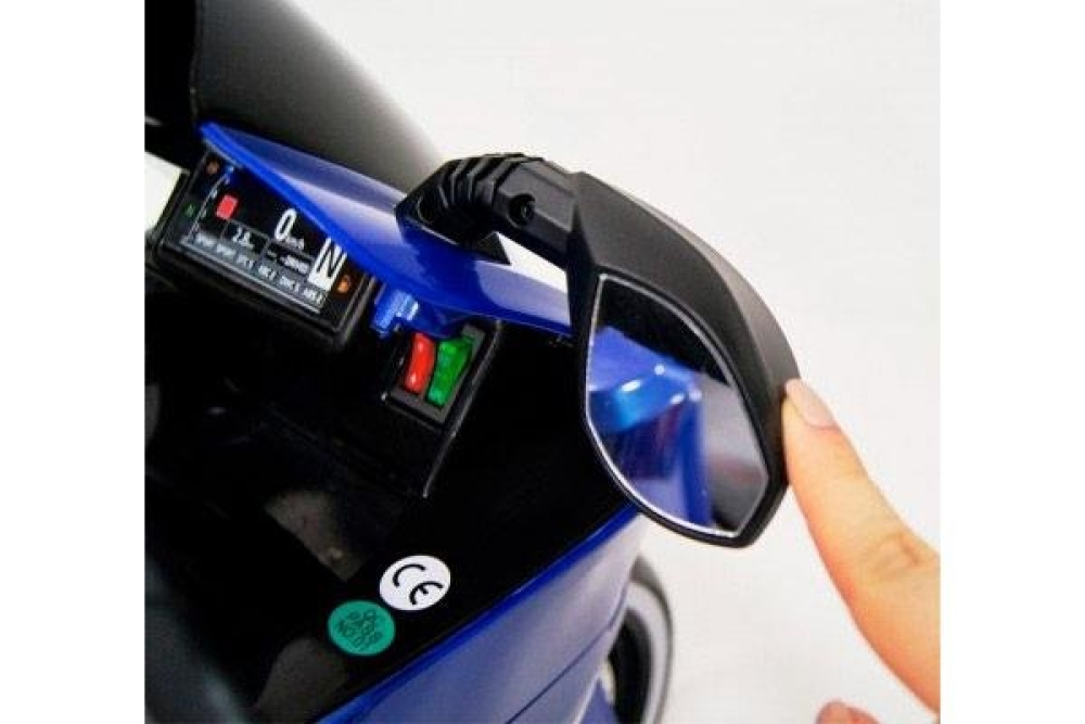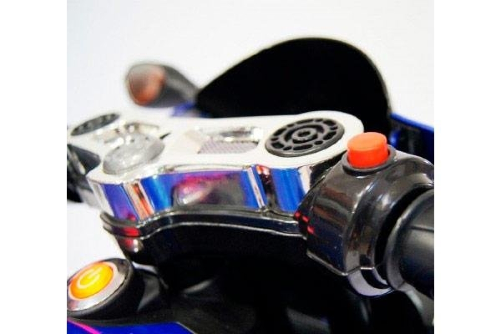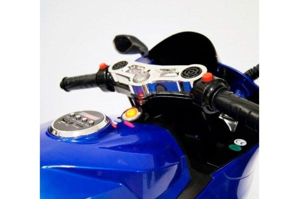 Плавный разгон возможен благодаря пофоротной ручки газа, поэтому ваш ребенок всегда сможет выбрать нужную скорость езды. Диодная подсветка фар позволяет ездить в темное время суток, а с громкими звуковыми эффектами ваше чадо точно заметят. Два мотора по 35 ватт делают мотоцикл не только приемистым, но и проходимым, вместе с мягкими резиновыми колесами можно преодолевать легкое бездороожье. Боковые зеркала также сделают езду более безопасной. Чтобы завести мотоцикл нужно нажать кнопку Старт/Стоп. Возможно прослушивание музыки, т.к. вбазовой комплектации идет мальтимедийная система с входом для USB и micro SD.