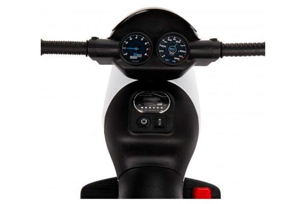 Детский трицикл Y-MAXI Police White, который может разогнаться до 5 км/ч. Эту скорость обеспечивают моторы мощностью 15 W, которых в мотоцикле 2 шт, а аккумулятор 6V7Ah позволяет кататься до 2.5 часов на одном заряде. Газ и тормоз совмещены в одной педали - при нажатии начинается движение, если отпустить - тормозит. Это одна из немногих моделей с магнитолой, к которой можно подключить USB флешку с музыкой или SD карту, а также любой плеер по AUX. На экрене отображается заряд аккумулятора. Сиденье - кожаное, также предусмотрены подножки.