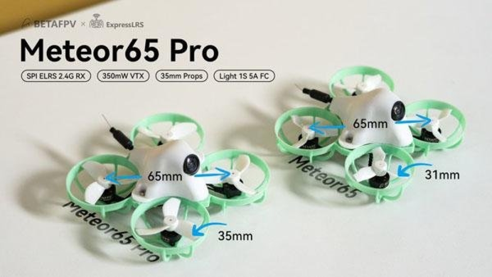 Meteor65 поставляется с 35-миллиметровыми пропеллерами для повышения мощности и маневренности в полете. Дрон оснащается хорошо знакомыми компонентами - плата F4 1S 5A FC со встроенным приемником ExpressLRS, видеопередатчик M03 мощностью до 350 мВт.