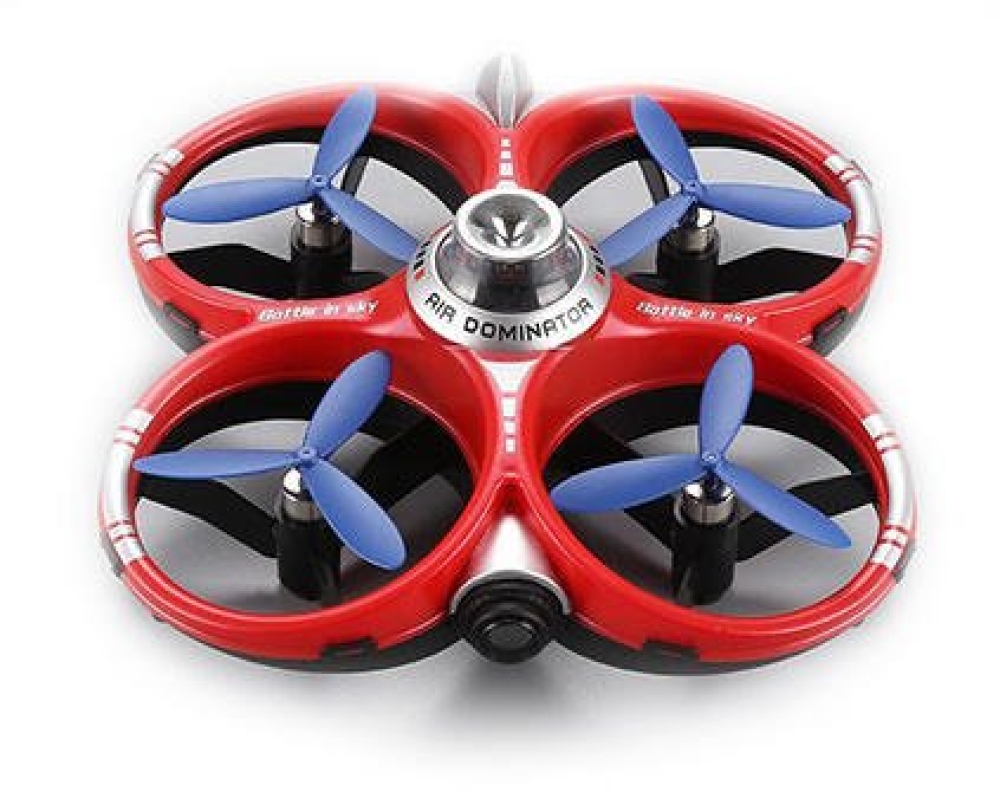 Дальность стрельбы стандартной ИК пушки примерно 2 метра. Каждое попадание в модель противника лишает его одной «жизни», а как только оппонент потеряет 5 «жизней», его дрон автоматически приземлится. Хотите сделать зрелище более красочным – дождитесь вечера, погасите свет, и включите на коптерах светодиодные огни. Летайте, сражайтесь, зарабатывайте золотые монеты, и вы сможете получить функцию уклонения от обстрела, восстановление жизни, активацию реверса управления у противника, энергетический щит и многое другое