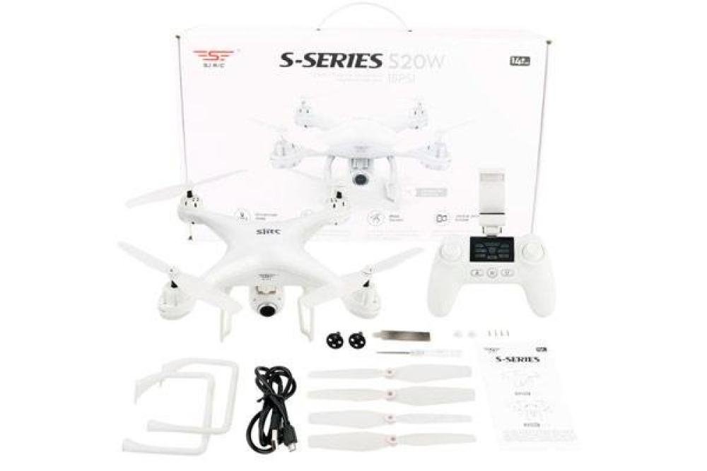 Радиоуправляемый квадрокоптер SJ-S20W - отличная модель для новичков чтобы освоить азы пилотирования. Имеет крупные коллекторные электромоторы, которые неплохо справляются с ветром. Имеет на своем борту качественную HD камеру, которая оснащена высококачественным широкоугольным объективом с углом обзора 120 градусов. Углом наклона камеры можно управлять с пульта - ее можно опустить из исходного положения на 75 градусов вниз. Фото и видео сохраняются на SD карту памяти. НD WIFI FPV передается на экран смартфона в режиме онлайн с полезной полетной информацией. Особенности модели: