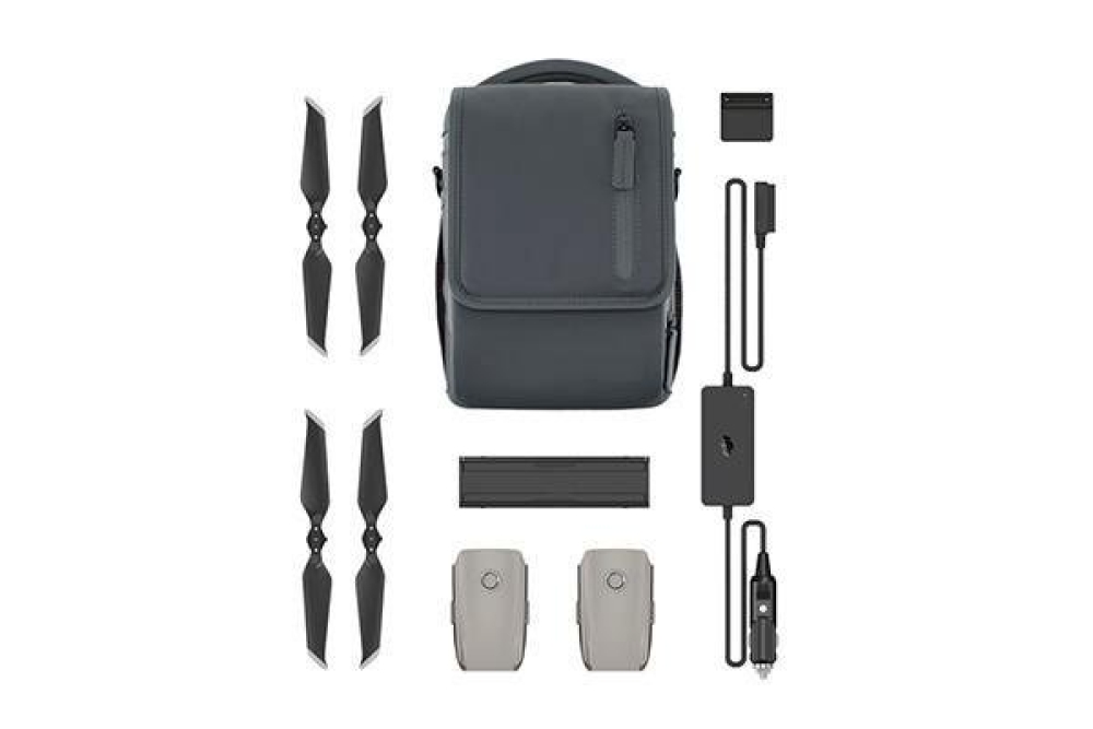 В комплект входят 2 аккумулятора, автомобильное ЗУ, хаб для последовательной зарядки (до 4х аккумуляторов), адаптер Battery to Power Bank (для зарядки различных устройств от аккумуляторов Mavic 2), 2 пары запасных пропеллеров, фирменная сумка для хранения и транспортировки.