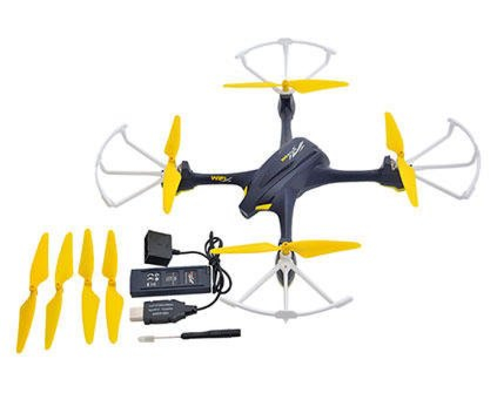 Hubsan H507D - еще одна комплектация линейки квадрокоптеров. Данная модель оснащена встроенной FullHD-камерой, позволяющей передавать изображение в режиме реального времени по Wi-Fi на монитор на пульте на расстоянии до 100-300 м. Также видео полета можно сохранять на карту памяти microSD объемом до 16 Гб. Современная система стабилизации аппарата включает барометр и 6-осевой гироскоп для надежного удержания заданной высоты, помимо этог, есть модуль GPS для более точной навигации. Юркий и маневренный квадрокоптер отличается понятным управлением и всеми необходимыми функциями для комфортного и увлекательного полета.Благодаря режиму Headless Mode даже новичок справится с пилотированием дрона. Функция Follow Me позволит не беспокоиться о направлении полета квадрокоптера. Взлет и посадка совершаются нажатием всего одной кнопки. При потере сигнала квадрокоптер автоматически возвращается в точку взлета. Полного заряда аккумулятора хватит на 10 минут завораживающего и увлекательного пилотирования.