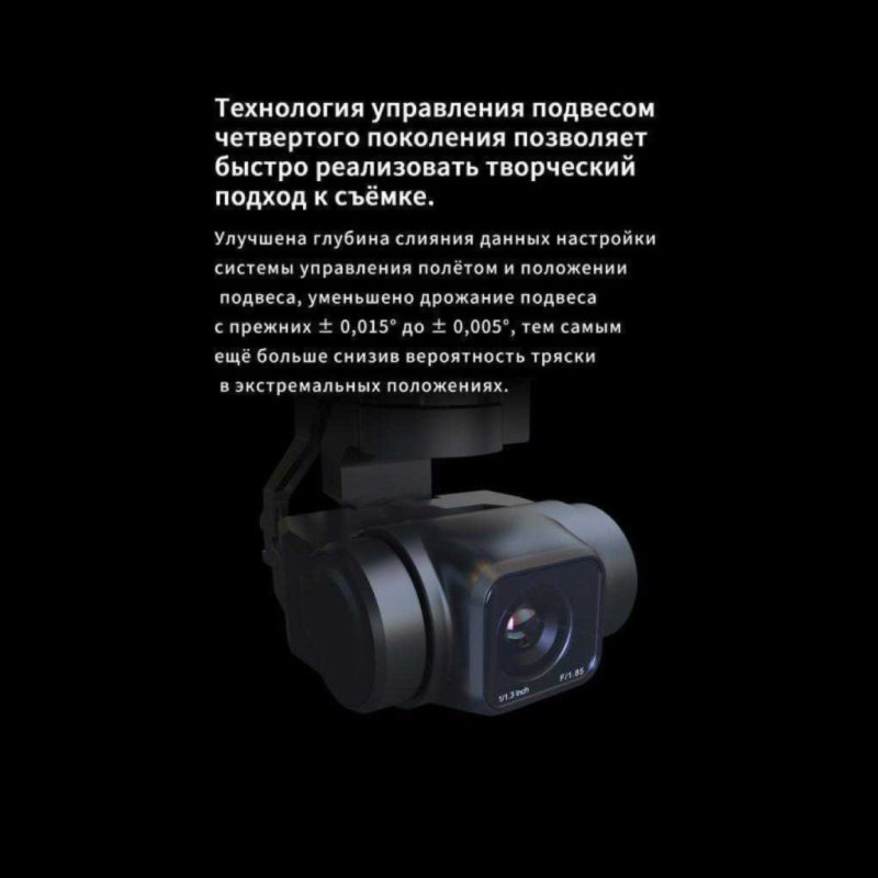 | Точность зависания | В вертикальной плоскости: ±0,1 м (визуальное позиционирование), ±0,5 м (спутниковое позиционирование); В горизонтальной плоскости: ±0,1 м (визуальное позиционирование), ±1,5 м (высокоточная система позиционирования) |