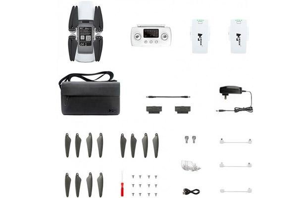 Сумка в комплекте, 3 аккумулятора, запасные лопасти. Сенсор 1/2.6 дюйма f/2.2 с фокусным расстоянием 3.5мм. 35 минут полета и дальность 10 км. 4k запись видео и трансляция 1080p на смартфон с помощью Syncleas 3.0