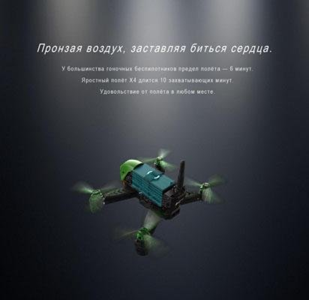 - аккумуляторная батарея квадрокоптера - Li-Po 7.6V 980 mAh обеспечит до 10 минут полета