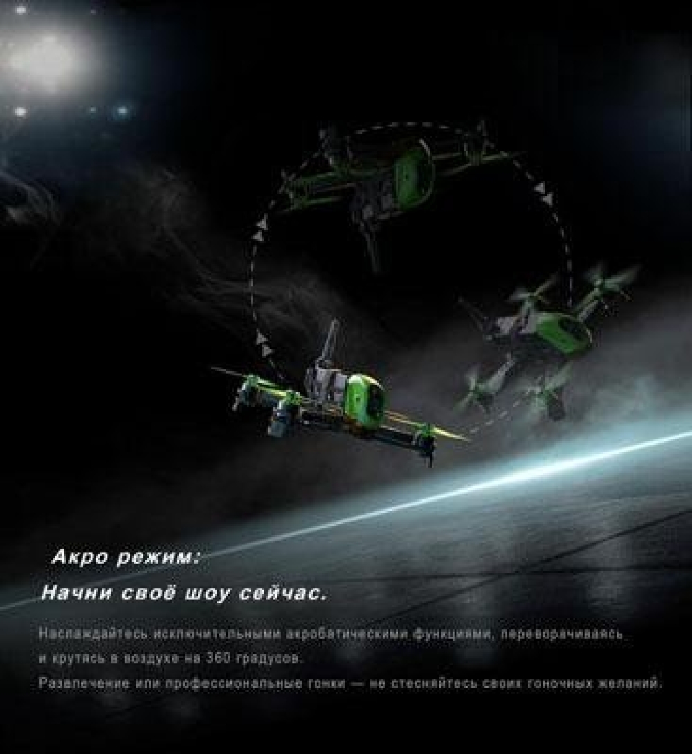 - полностью ручное управление - модель без GPS, барометра, имеет 6-ти осевой гироскоп