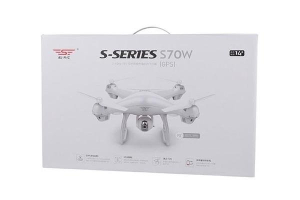 SJ RC S70W FPV GPS SJ-S70W – радиоуправляемый квадрокоптер с GPS, транслирующей по Wi-Fi HD-камерой и достойным функционалом. FPV-трансляция производится на смартфон, который удобно крепится на пульт управления, дистанция передачи видео составляет 150 м. Угол обзора камеры составляет 120°, качество снимаемого видео 720р 25 fps. Функционал SJ-S70W придется по душе и новичку, и более опытному пилоту, и позволит превратить аэросъемку и пилотирование в увлекательное развлечение. Для более безопасного и простого управления предусмотрены функции Headless Mode, возврат в точку взлета при потере сигнала или разряде батареи, автовзлет и посадка. Встроенный барометр помогает хорошо удерживать заданную высоту. Любителям аэросъемки пригодится функция Follow Me. Для полета в темное время суток пригодятся яркие светодиодные огни. Управлять квадрокоптером можно как при помощи пульта ДУ, так и с помощью смартфона.