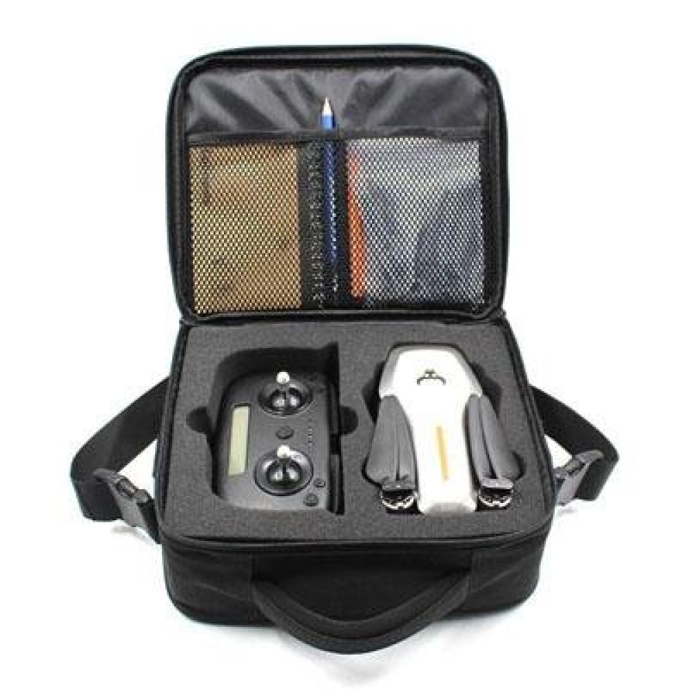Обновленная версия складного дрона, в комплекте к которому идет удобная сумка-чемодан. Это вкупе делает запуск дрона очень удобным и позволяет не задумываться брать его с собой, например, в путешествие или нет. Модель оснащена поворотным механизмом камеры, поэтому можно делать красивые кадры в том числе и локаций, находящихся под дроном. Вся полетная телеметрия (т.е. информация о полете) передается как на экран смартфона, так и на экран с пульта управления. Особенности и преимущества модели: