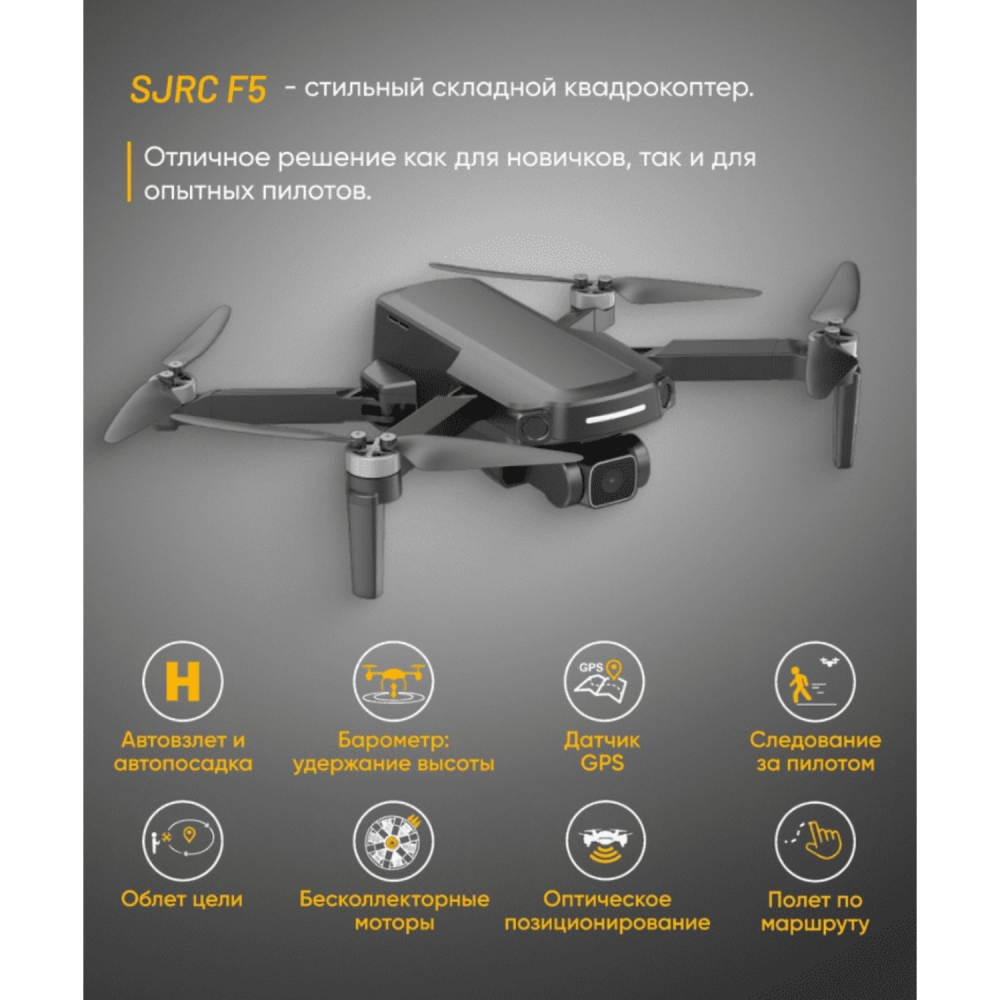 Радиоуправляемый квадрокоптер SJRC F5 2K 5G GPS 2.4G RTF (2 батареи) - SJ-F5-COMBO