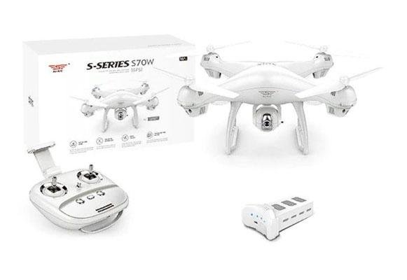 дрон S70W, аккумулятор, пульт управления, кронштейн для смартфона, зарядное устройство, 4 запасных пропеллера, инструкция