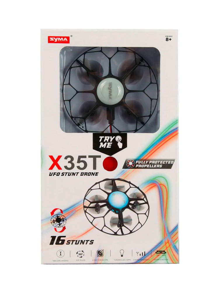 | Комплектация | Квадрокоптер SYMA X35T, пульт управления, USB-кабель для зарядки, запасные лопасти (4 шт), инструкция |