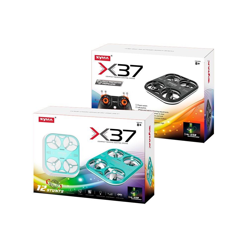 - X37 имеет защиты на лопастях для безопасного управления. Встроенный 6-осевой гироскоп обеспечивает точное позиционирование в полете и делает полет устойчивым и стабильным.