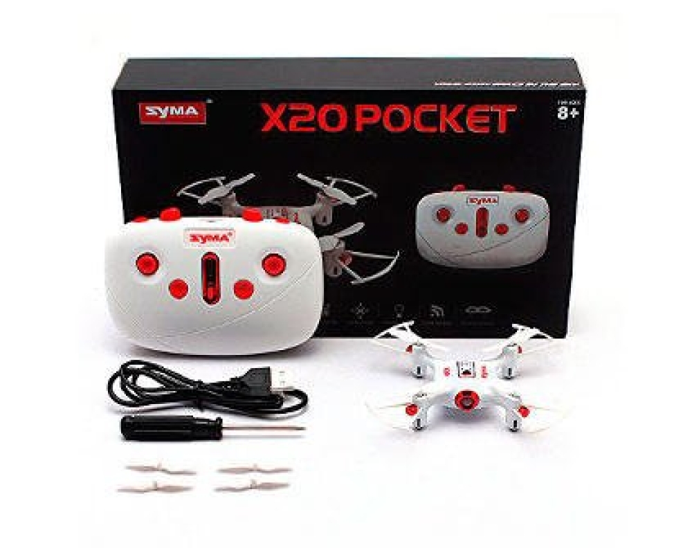 Миниатюрный и очень стильный квадрокоптер Syma X20 pocket для полетов в закрытых помещениях. Подойдет как для обучения, так и для развлечения пилоту любого уровня, будь то профессионал, который летает на настоящих дронах, так и любитель, делающий первые шаги в пилотировании. Этот малыш имеет защиты на лопастях для безопасного управления, а также умеет делать флипы, т.е. перевороты на 360 градусов. Очень стабилен в воздухе за счет 6-ти осевого гироскопа. Для ночных полетов установлены светодиодные огни LED, которые также начинают ярко мигать при разряде аккумулятора. При размерах в 10.5 см его можно запускать как дома, так и на улице.