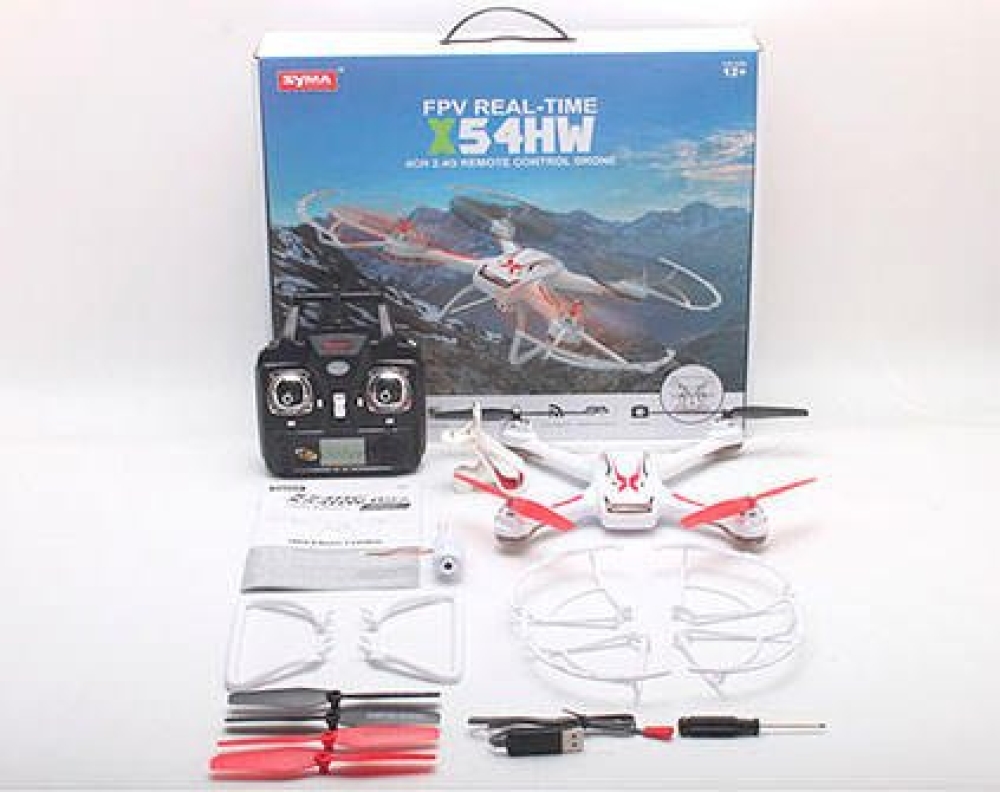 Квадрокоптер Syma X54HW - новый квадрокоптер с транслирующей камерой и барометром. При этом квадрокоптер относится к недорогим моделям, хотя по ощущениям наощупь такого не скажешь. Это, пожалуй, самый доступный квадрокоптер с барометром и транслирующей камерой. Умеет передавать картинку онлайн на ваш смартфон и зависать на фиксированной высоте. Шести осевой гироскоп позволяет держать стабильный курс в полете, несмотря на ветер. Установленные коллекторые моторы дешевы в обслуживании и имеют маленький размер и вес.Аккумулятор на 650 mAh можно зарядить всего за 100 минут.