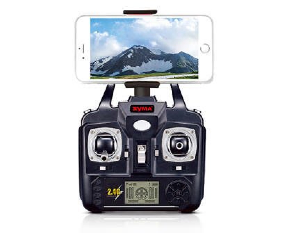 Линейка Syma – это любительские модели развлекательного характера. Радиоуправляемый квадрокоптер Syma X5SW FPV HD Real-Time 4CH оснащен функцией FPV. Это значит, что вся картинка, попадающая в объектив камеры, транслируется на мобильное устройство. На пульте управления беспилотником установлено крепление для смартфона. Выделим несколько основных характеристик данного аппарата: