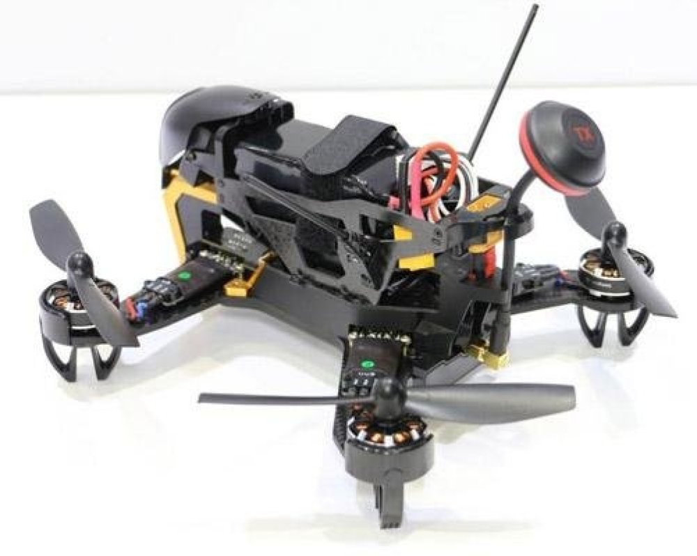 Небольшой гоночный дрон на карбоновой раме, полностью готовый к полетам и соревнованиям. Настроен уже с завода, и обладает отличными летными характеристиками. Имеет в комплекте модуль OSD для передачи телеметрии (полетной информации) на экран монитора. Рекомендуется использовать шлемы FPV, работающие на частоте 5.8 Ghz. Основные особенности и преимущества модели: