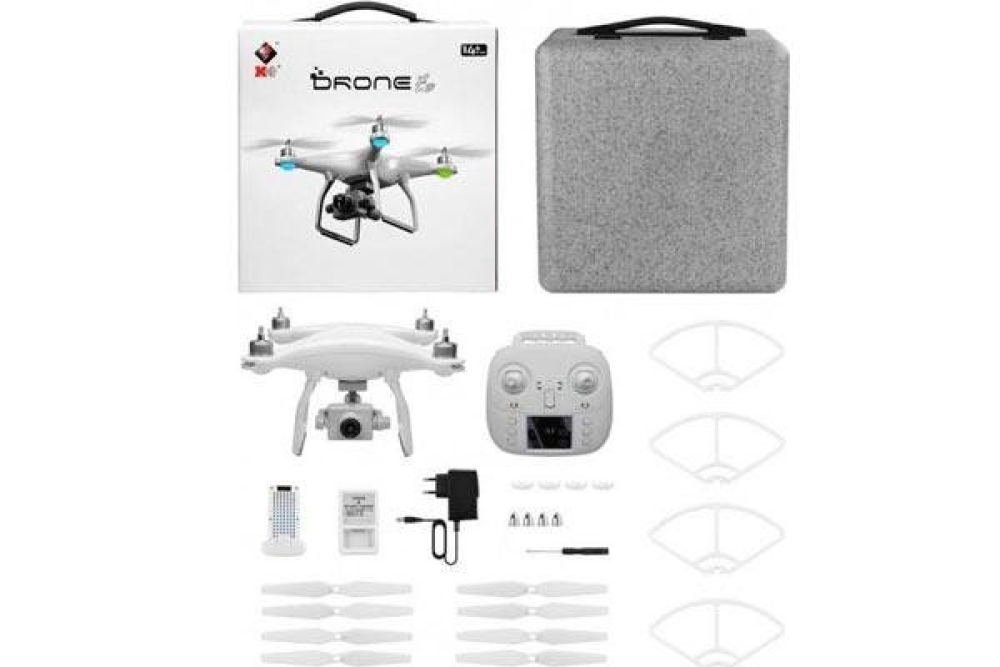 Новейший дрон от WLToys XK X1 в классическом исполнении. Главной особенностью является наличие 2-х осевого электронного подвеса, который стабилизирует камеру во время полета и картинка видео будет максимально плавной без тряски. Для удержания координат и безопасности полета в коптере есть GPS модуль, который также отвечает за возврат в точку старта если вы потеряли сигнал или не уследили за разрядкой батареи. Стоит отметить и качественную камеру, которая снимает видео с разрешением 1080p 25fps, а передача сигнала происходит на ваш смартфон. Мощные бесколлекторные моторы помогут преодолеть даже сильные порывы ветра, а защита пропеллеров (идет в комплекте) обезопасит пролет рядом со зданиями и деревьями. Особенности квадрокоптера XK X1: