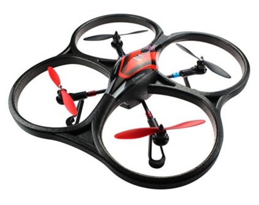 Комплект поставки: собранный квадрокоптер, пульт управления, аккумулятор, зарядное устройство, запасные винты, инструкция
