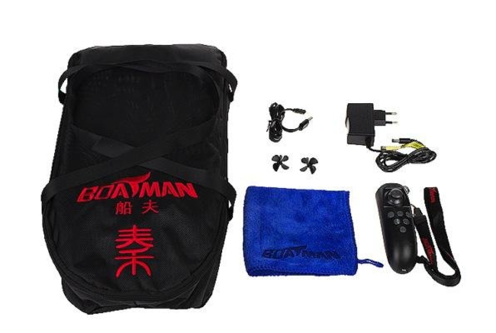 В комплект входят кораблик, пульт управления, зарядное устройство, аккумулятор, отвертка, шестигранник и сумка для хранения.