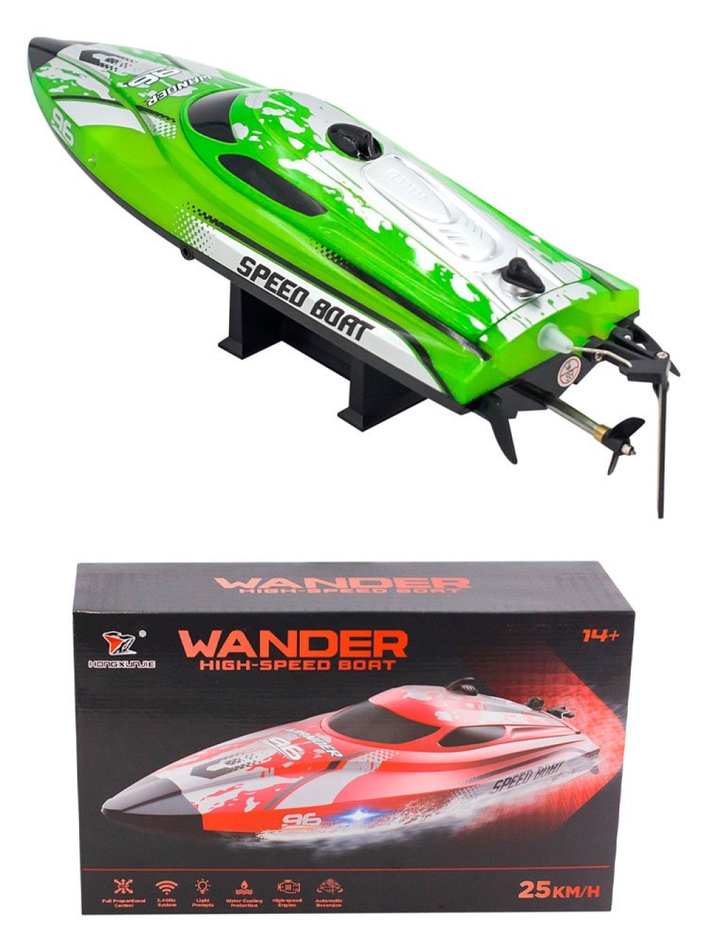 Радиоуправляемый катер CS Toys Wander (30 см, LED, 25 км/ч) - HJ820-GREEN