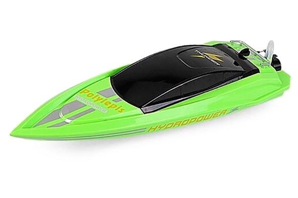 Скоростной катер для начинающих капитанов. Оснащен уникальной технологией - данные катер не имеет классического вала с гребным винтом, который имеет свойства накручивать на себя тину и водоросли, а также ломаться о камни при попадании на мель. Сервомеханизм поворачивает помпу, благодаря чему происходит поворот катера влево или вправо. За счет сопла катер развивает более высокую скорость (реактивная струя). Модель имеет систему автопереворота при опрокидывании в воде. Крышка корпуса имеет двойную защиту, что препятствует попаданию воды в трюмы. Для предотвращения перегрева мотора и электроники вне воды система автоматически отключается.