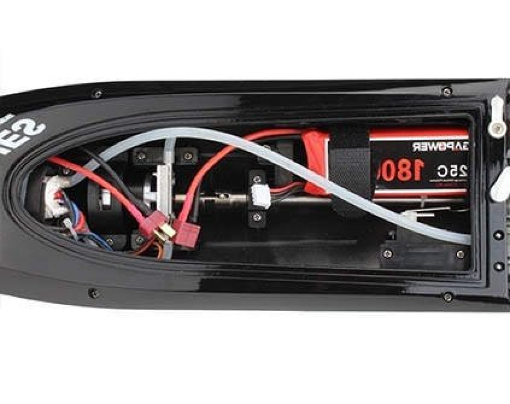 Катер оборудован регулятором скорости и бесколлекторным двигателем. Модель обладает хорошей маневренностью и может разогнаться до 50 км/час. Переворачивается катер нажатием одной кнопки, что позволяет быстро вернуться в рабочее состояние и продолжить движение. Двигатель с водяным охлаждением и электронным регулятором скорости делают катер более стабильным и увеличивают длительность работы. Электронная система управления скорости защищает механизмы от перенапряжения и низкого напряжения.