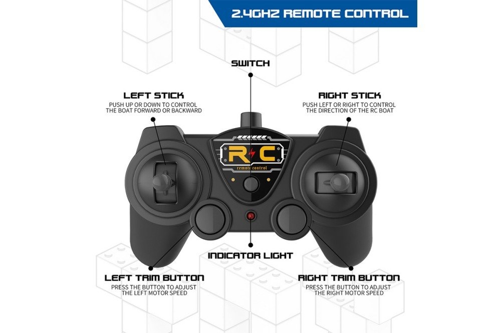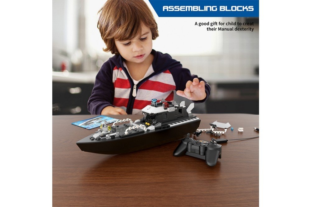 В отличие от обычных конструкторов катер V103 оснащен дистанционным управлением 2.4G, что позволяет управлять катером на воде. Он подходит для бассейнов и небольших озер и станет лучшим выбором для времяпровождения родителей и детей.