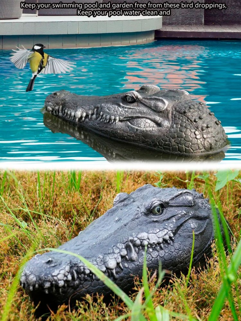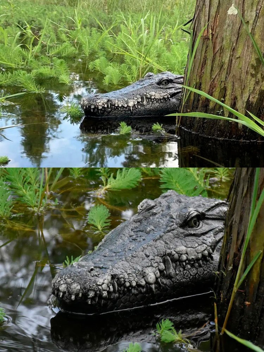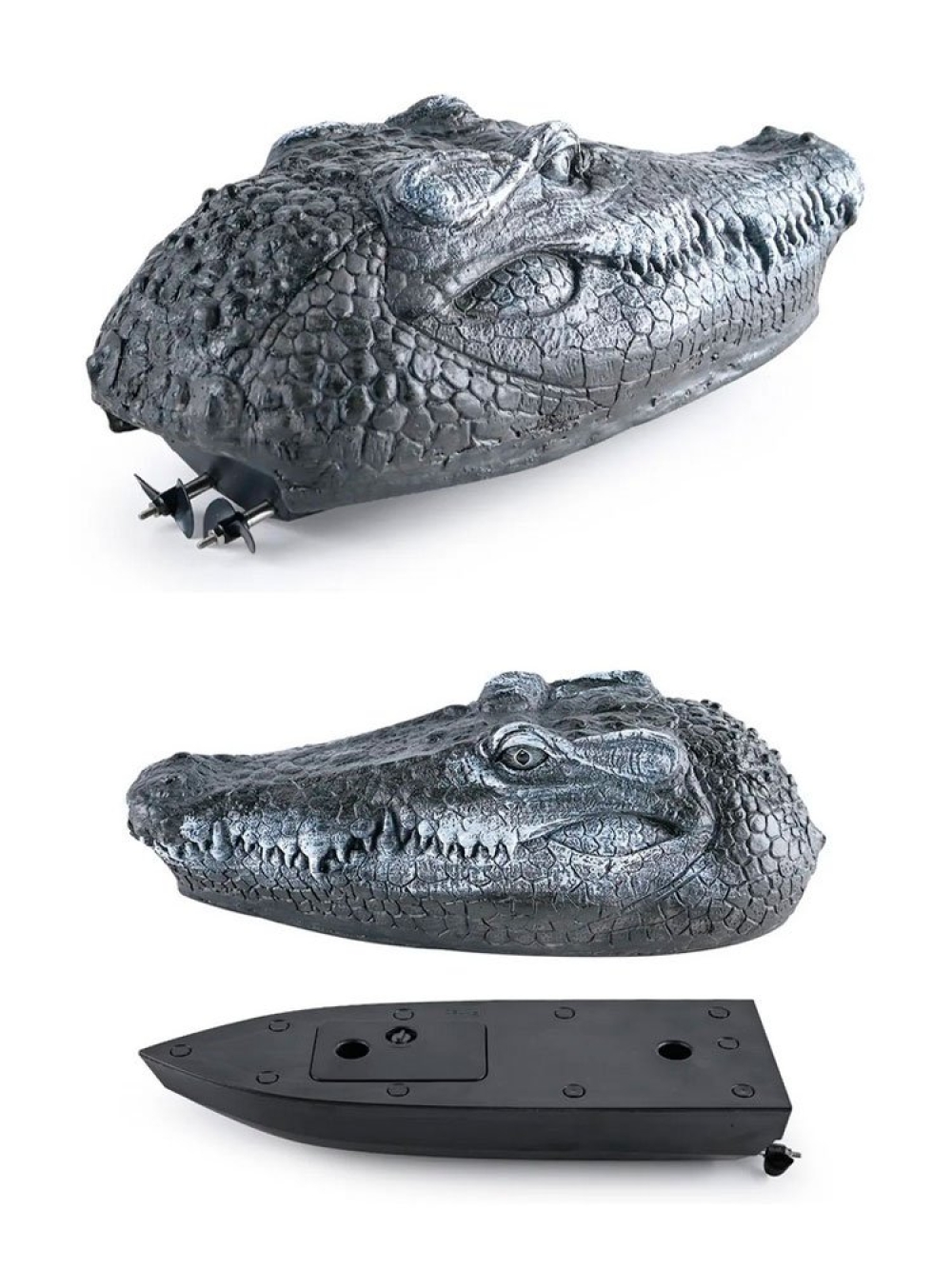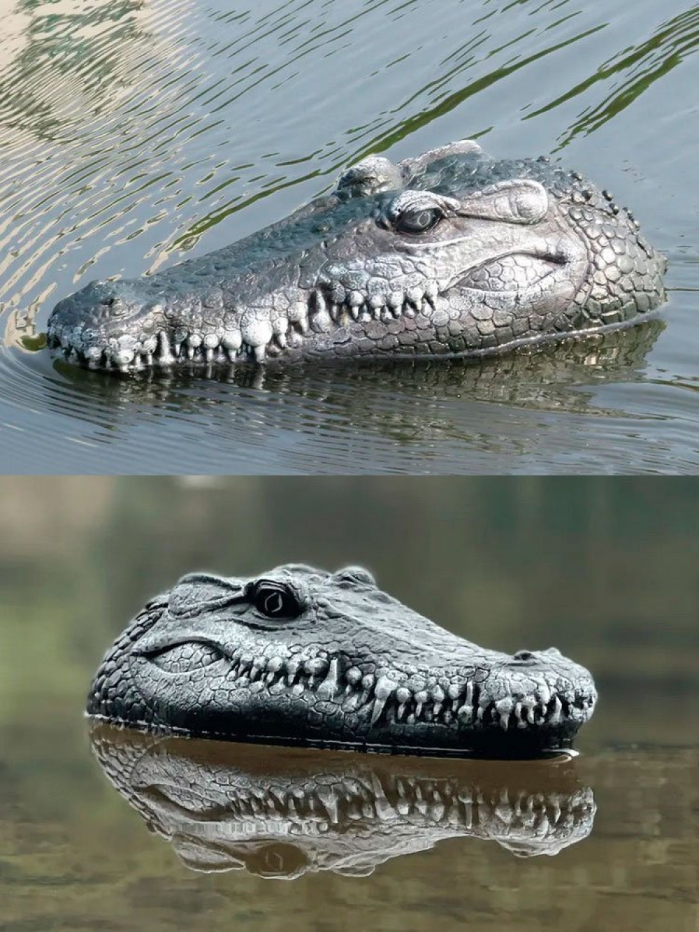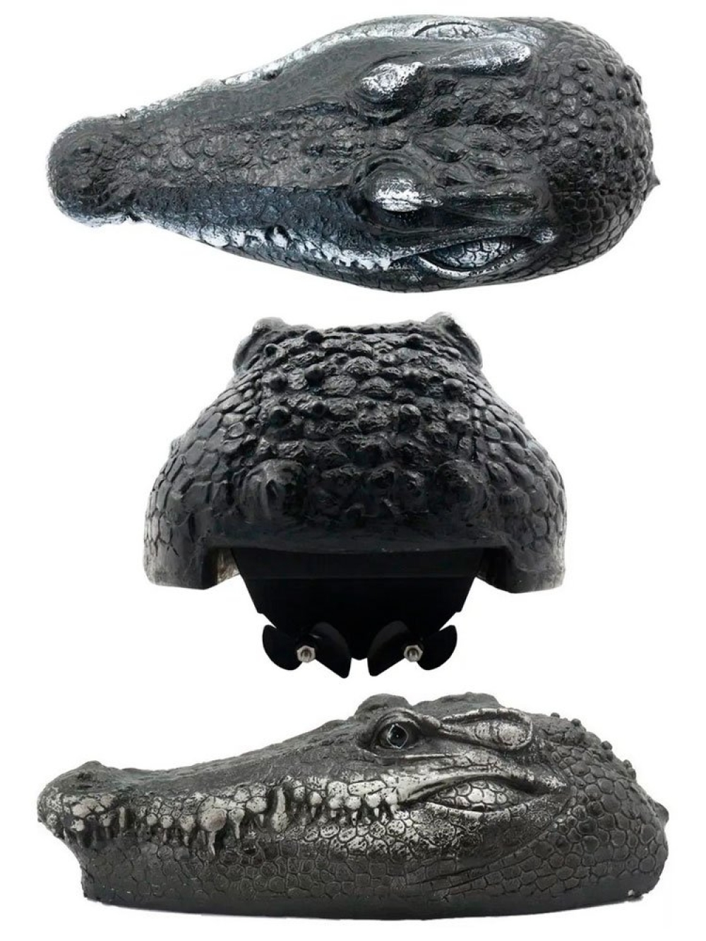 - Изготовленный из полимерного материала катер, имитирующий голову крокодила, выглядит реалистично и помогает отпугивать вредителей и водоплавающих птиц от пруда, озера.