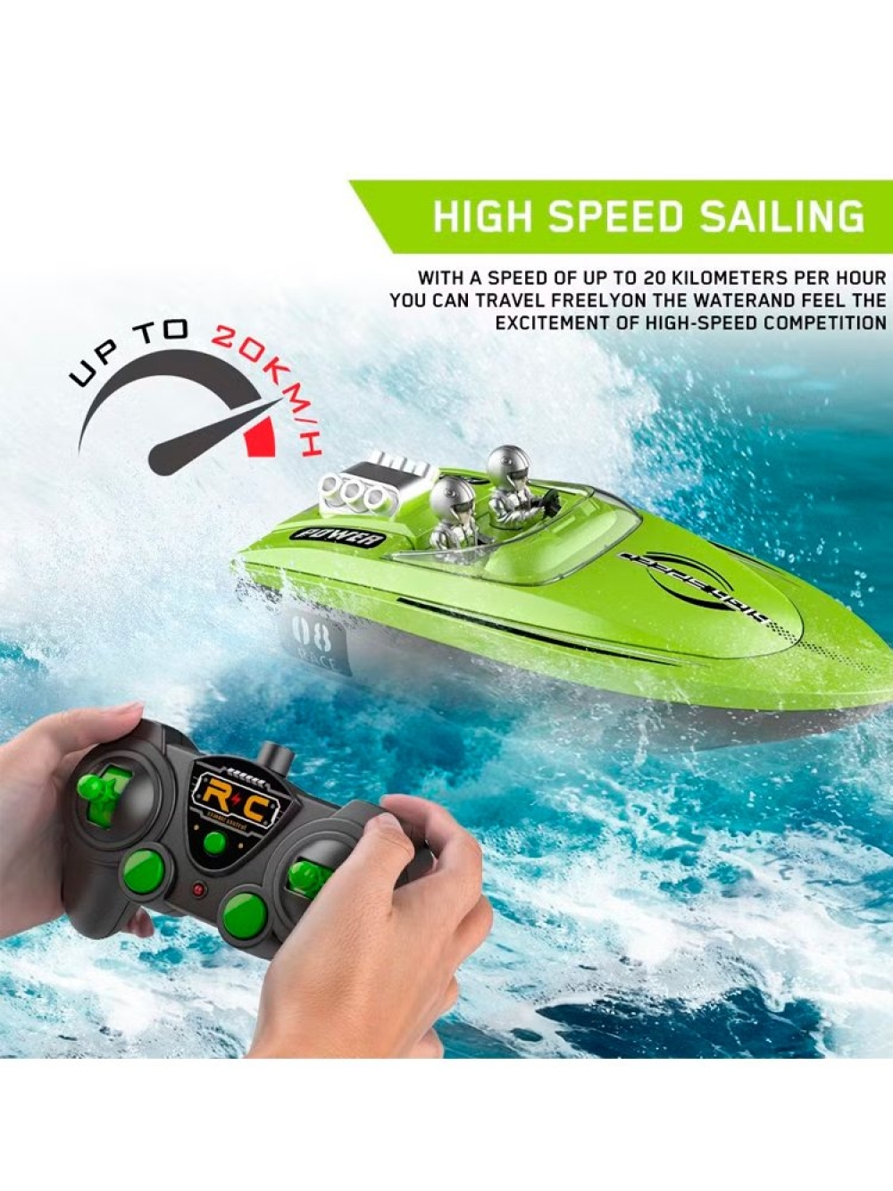 Поворачивайте влево и вправо, чтобы увернуться от противника, а затем дайте ему газ, как профессионал, чтобы оставить противников далеко позади. Легкое управление катером V222 с помощью пульта дистанционного управления с частотой 2,4 ГГц на расстоянии до 50 метров обеспечивает надежный сигнал без помех. Помимо этого, пульт вовремя оповестит вас сигналом о превышении расстояния или когда упадёт заряд батареи катера или пульта, чтобы вовремя вернуть катер в исходную точку.