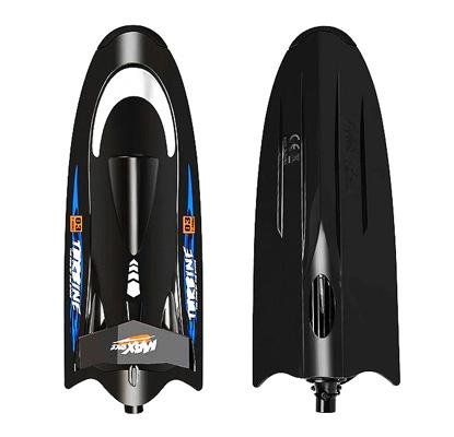 Гоночный катер от Flytec с коллекторным мотором 390 класса. Максимальная скорость 30 км/ч, есть три режима скорости. Работает около 15 минут, управляется на расстоянии до 150 м. Есть функция оповещения о низком уровне заряда батареи, а также предупреждение об ухудшении качества сигнала. Цвет лодки - чёрный.