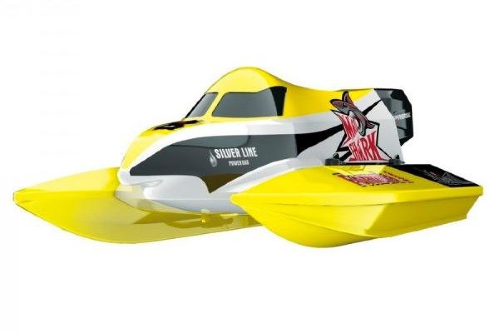 Большой катамаран с мощным регулятором оборотов - оставит конкурентов далеко позади. За счет строения кузова устойчив на волнах и практически летит над поверхностью воды на высоких оборотах. Имеет хорошую влагозащиту и не боится переворотов. Дизайн катера повторяет оригинальные гоночные модели, а руль выполнен в виде навесного оригинального мотора.