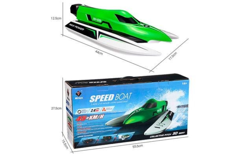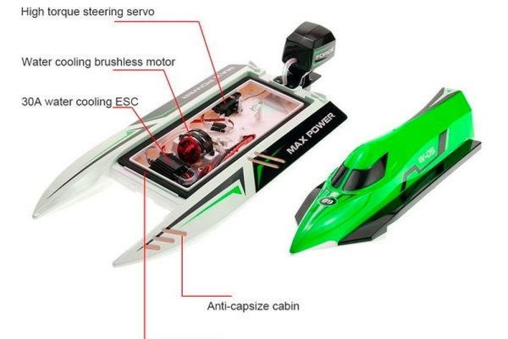 - частота управления 2.4Ghz позволит управлять катером на расстоянии до 150 метров
