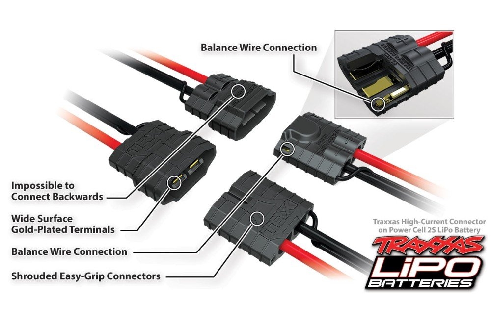 Внимание! Новое зарядное устройство предназначено для работы с аккумуляторами серии ID™ с разъёмами второго поколения. Аккумуляторы старого типа также совместимы с новыми быстрыми зарядными устройствами при использовании фирменного переходника TRAXXAS. Для установки старых аккумуляторов на данную модель не требуется вносить какие-либо изменения в конструкцию.