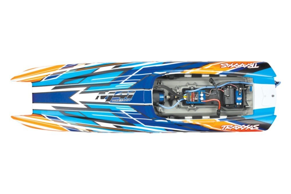 Благодаря продуманному дизайну корпуса и мощным 1350-сильным двигателям Mercury, он способен разгоняться по воде до фантастической скорости 280 км/ч! Инженеры компании TRAXXAS в точности воспроизвели невероятный внешний вид и основные конструктивные особенности знаменитого судна. Великолепная копия DCB M41 точная и быстрая, она принесёт пилоту самые яркие эмоции! Корпус катамарана доработан для того, чтобы получить высокую скорость, устойчивость и управляемость – качества, прославившие полноразмерный M41. Гладкая вода озера – родная стихия для стремительного и динамичного катамарана TRAXXAS M41, способного разгоняться до 80 км/ч. Специальная форма корпуса делает управление моделью простым и точным.