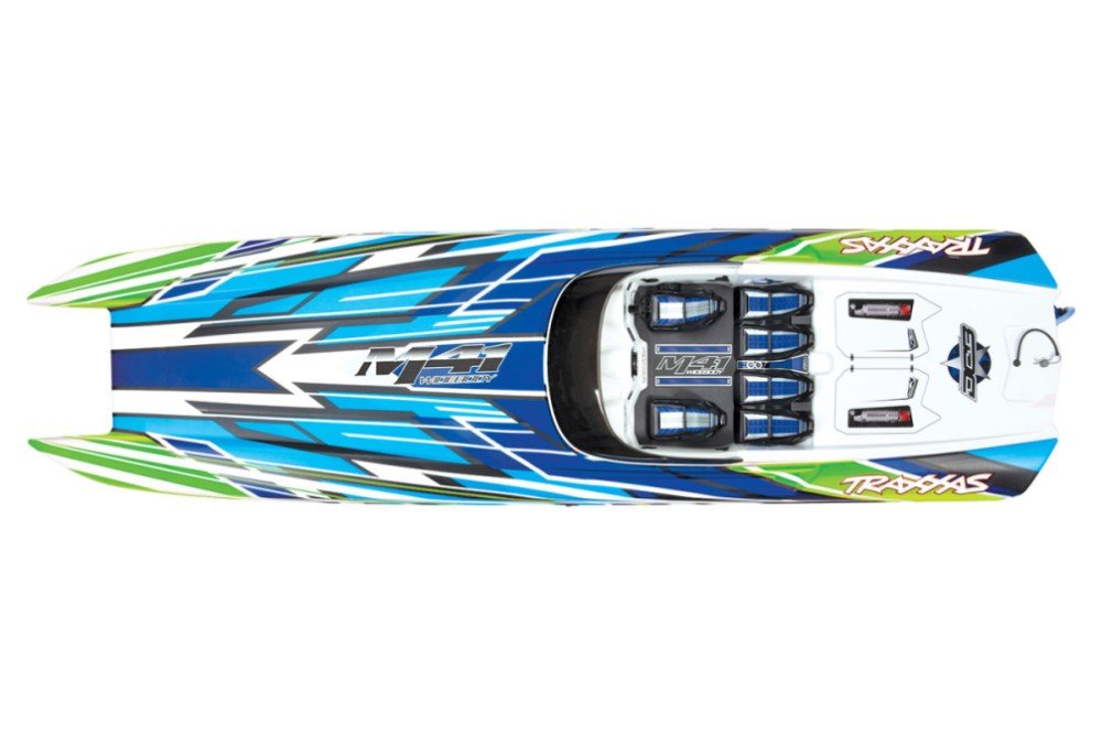 Благодаря продуманному дизайну корпуса и мощным 1350-сильным двигателям Mercury, он способен разгоняться по воде до фантастической скорости 280 км/ч! Инженеры компании TRAXXAS в точности воспроизвели невероятный внешний вид и основные конструктивные особенности знаменитого судна. Великолепная копия DCB M41 точная и быстрая, она принесёт пилоту самые яркие эмоции! Корпус катамарана доработан для того, чтобы получить высокую скорость, устойчивость и управляемость – качества, прославившие полноразмерный M41. Гладкая вода озера – родная стихия для стремительного и динамичного катамарана TRAXXAS M41, способного разгоняться до 80 км/ч. Специальная форма корпуса делает управление моделью простым и точным.