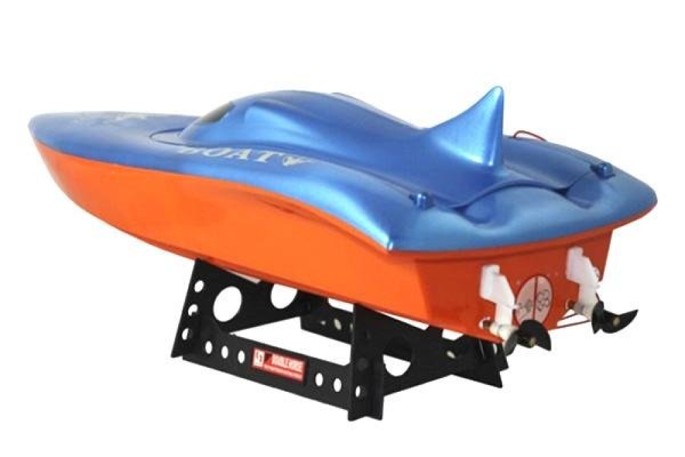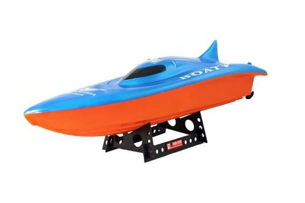 Радиоуправляемый скоростной катер в полной сборке. Обладает влагозащитой электроники. Ёмкость аккумулятора 1800 mAh позволяет наслаждаться игрой до 20 минут без подзарядки. Легкое управление и маневренность обеспечено мощным двигателем и большими винтами. Досягаемость пульта управления - до 50 метров от берега. В комплект поставки входит: катер, подставка, аккумулятор, зарядное устройство, два запасных винта, пульт управления и инструкция.