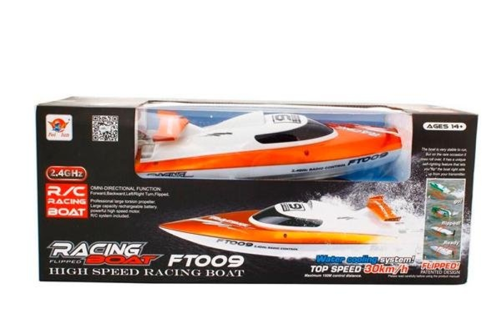Fei Lun High Speed FT 009 оснащен системой водного охлаждения двигателя, что позволяет эксплуатировать мотор при больших нагрузках. Максимальная скорость модели 30 км/ч. Как и все модели серии катер Fei Lun High Speed устойчив и обладает высокой маневренностью. Для управления используется пульт работающий на помехозащищенной частоте 2.4 Ghz. Значительные габариты модели позволяют производить запуск при высоких волнах. Катер подойдет для тех кто ценит драйв и высокую скорость.