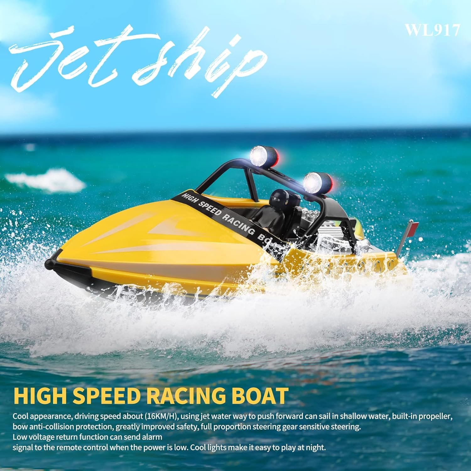 Легкий в управлении и небольшой катер от WL Toys. Цвет - жёлтый. Максимальная скорость 16 км/ч. Работает около 12 минут, управляется на расстоянии до 80 м.