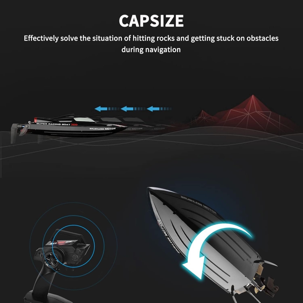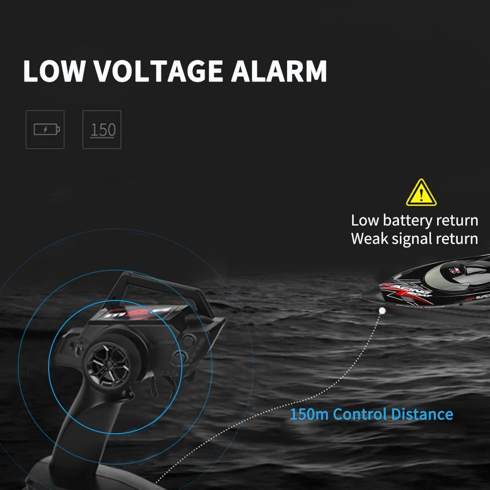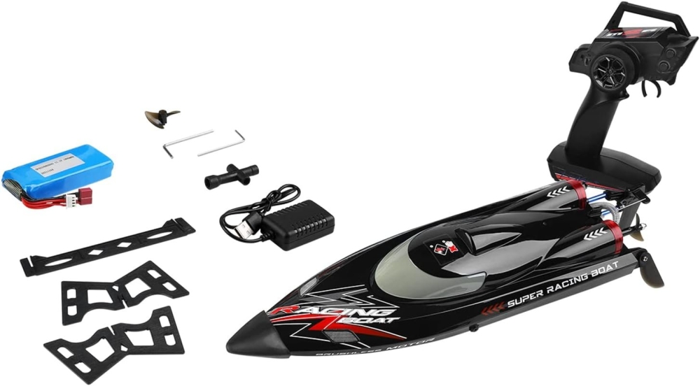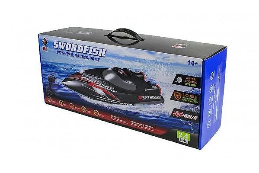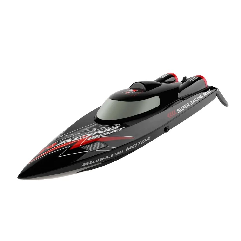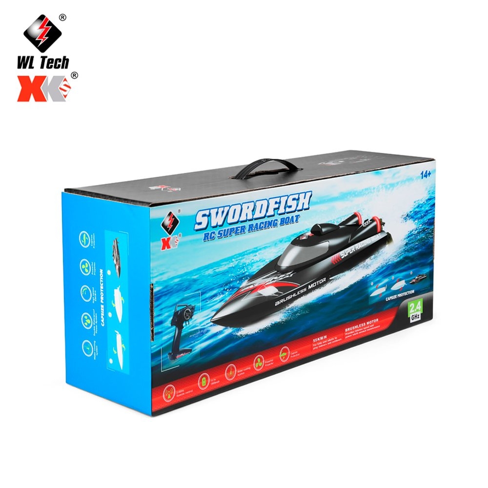 Лодка WL-916 от WL Toys, специально для любителей скоростных радиоуправляемых катеров. Есть подсветка (чтобы можно было запускать лодку вечером и ночью), управление легкое и в нем просто разобраться. Цвет - чёрный. Двигатель лодки бесколлекторный, максимальная скорость - 55 км/ч. Из функций предусмотрено звуковое оповещение о низком уровне заряда батареи, водное охлаждение мотора и функция авто-переворота.