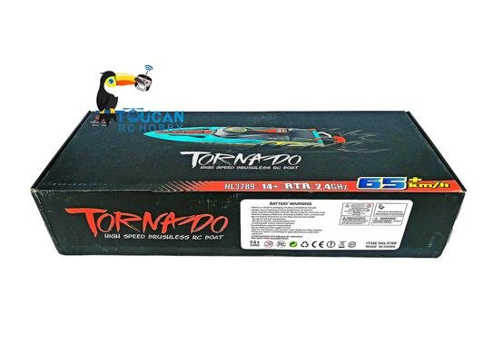 Гоночный катер от Heng Long с бесколлекторным мотором 2500 KV. Максимальная скорость более 65 км/ч. Управляется на расстоянии до 150 м. Цвет лодки - бирюзовый с желтым и оранжевым.