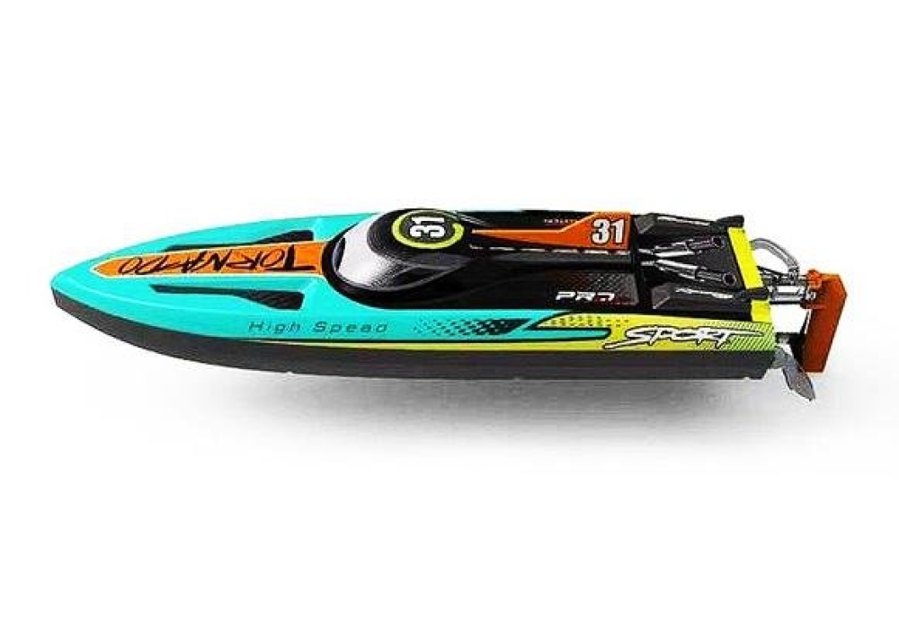 Радиоуправляемый гоночный катер Heng Long 3789 - это скоростная лодка с бесколлекторным двигателем Brushless 2500 KV. Гонки с ней можно устраивать как в соленой, так и в пресной воде - в море, на озере или в большом бассейне. Цвет данной модели - бирюзовый с желтым и оранжевым.